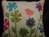 I love Kellie's designs! Your pillow for Laura looks wonderful! SO cheery and bright - perfect for a little girl's bead. I made the pillow tutorial into a baby quilt, and have also bought that pillow pattern. Must get working on those, too much fun, and like you say, great quilting practice!